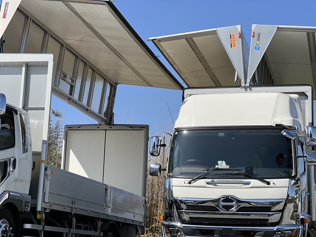 側面が開くウィング車の導入で、スムーズ・スピーディーな荷降ろし・運送を実現しています。